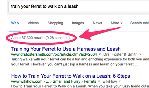 Let’s take a look at what I mean. I just Googled “train your ferret to walk on a leash” and got over 67,000 results.