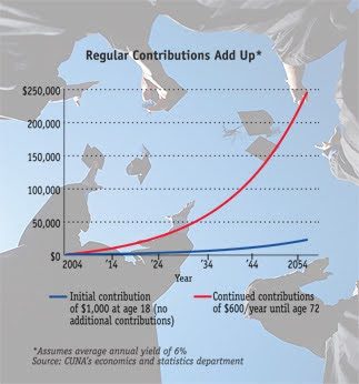 To keep you motivated, here’s a quick illustration of the power of continually adding money to your investment account: