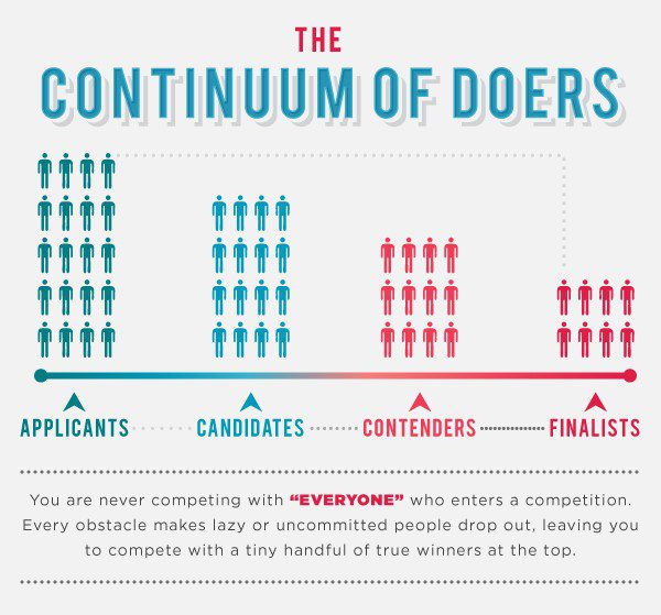 Most people spot an opportunity and eliminate themselves before trying. They assume they won't win and give up before the competition starts.