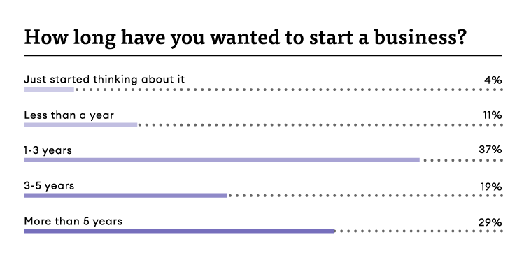 “How long have you been thinking about starting a business?” The answers: Many said 2 years, 3 years, even 5+ years.