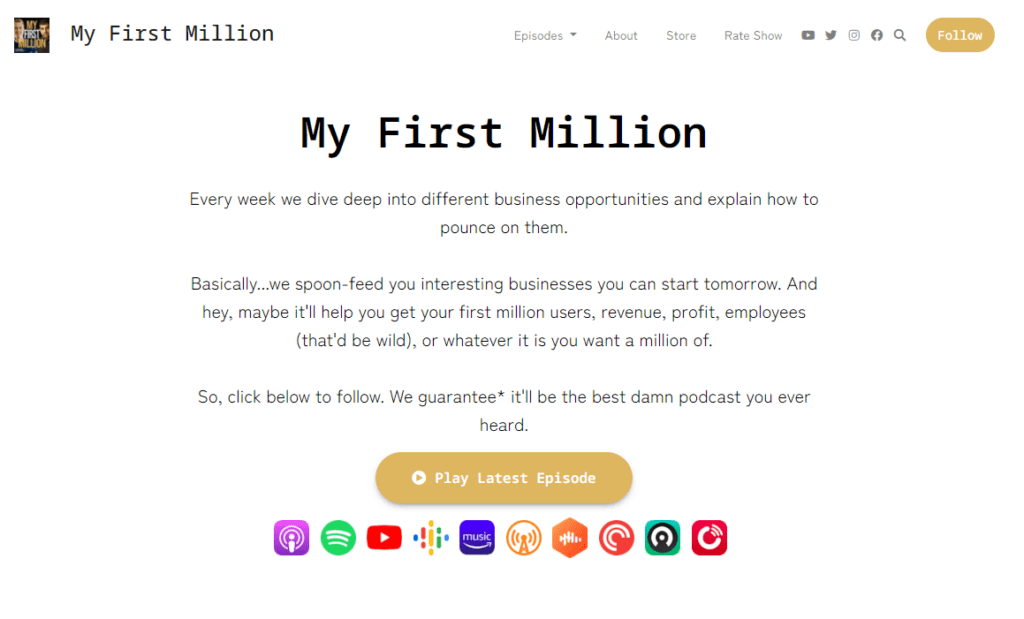 Hosted by Sam Parr and Shaan Puri, this isn't just another business podcast; it's a rollercoaster ride through the world of startups, investments, and the entrepreneurial journey.